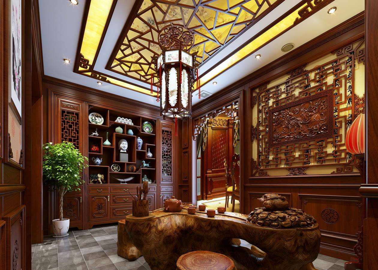 整木定制中式的美,是超越了一切的物质而到达的一种精神境界追求,它宁溢自然,清净优美,像一股清泉静静地流淌在空间里。